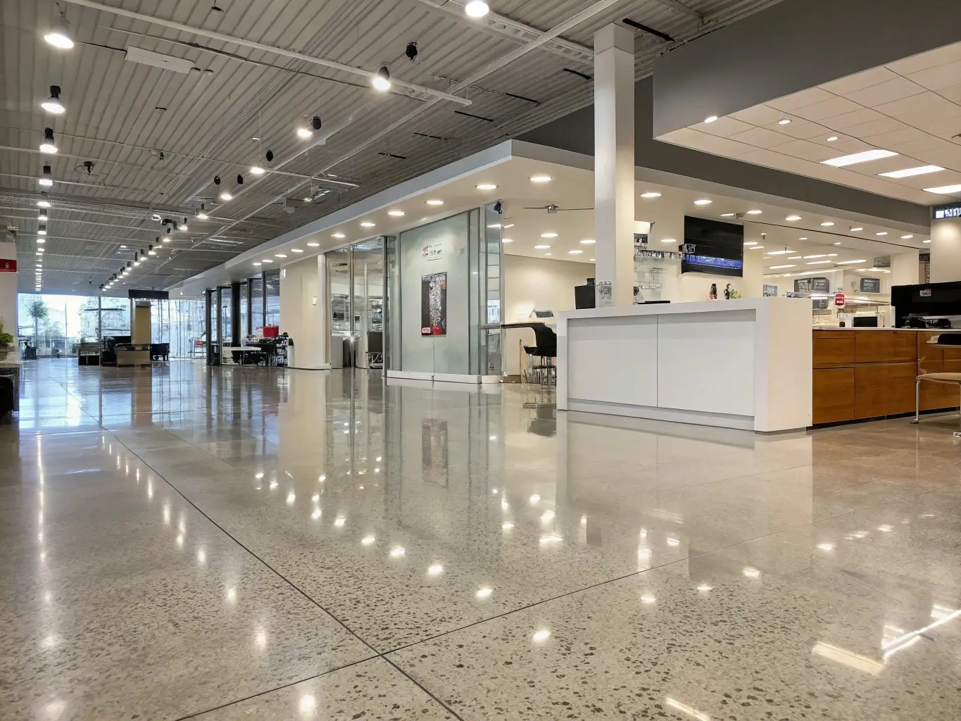 Choose from vinyl, carpet tiles, epoxy, hardwood, and more—customized for your brand.